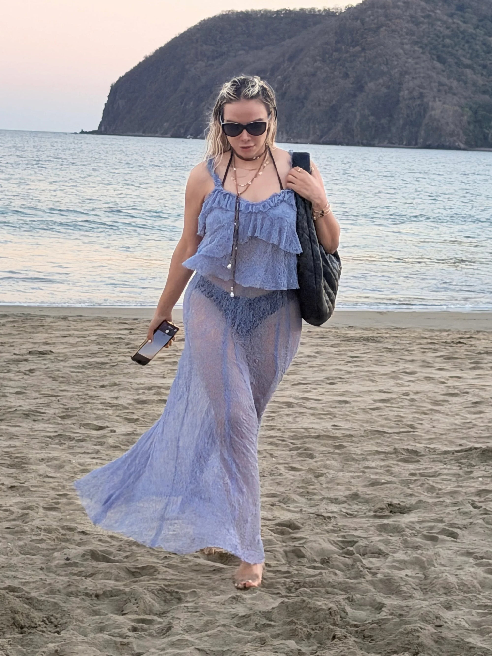 - Tejido ligero con transparencia sutil