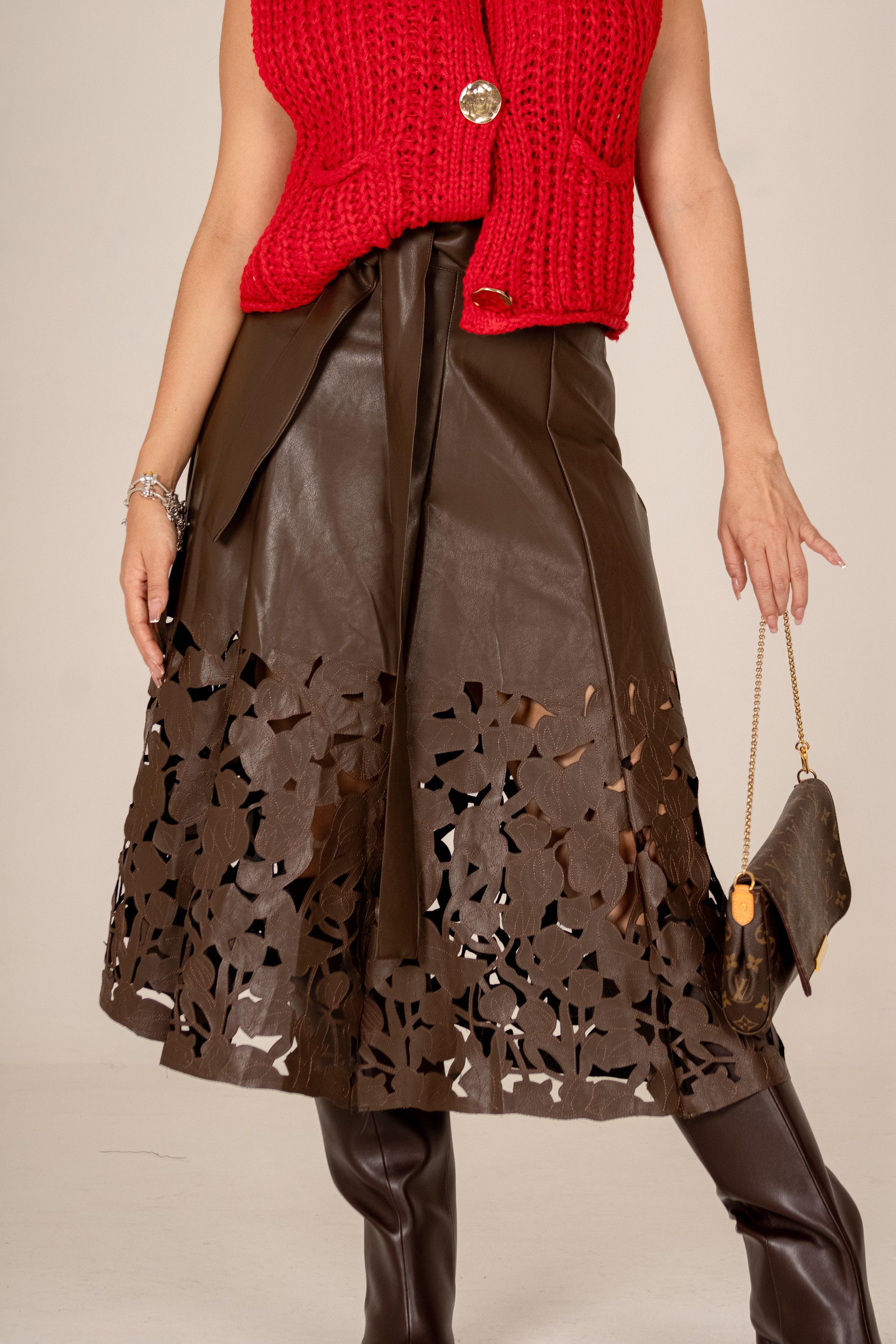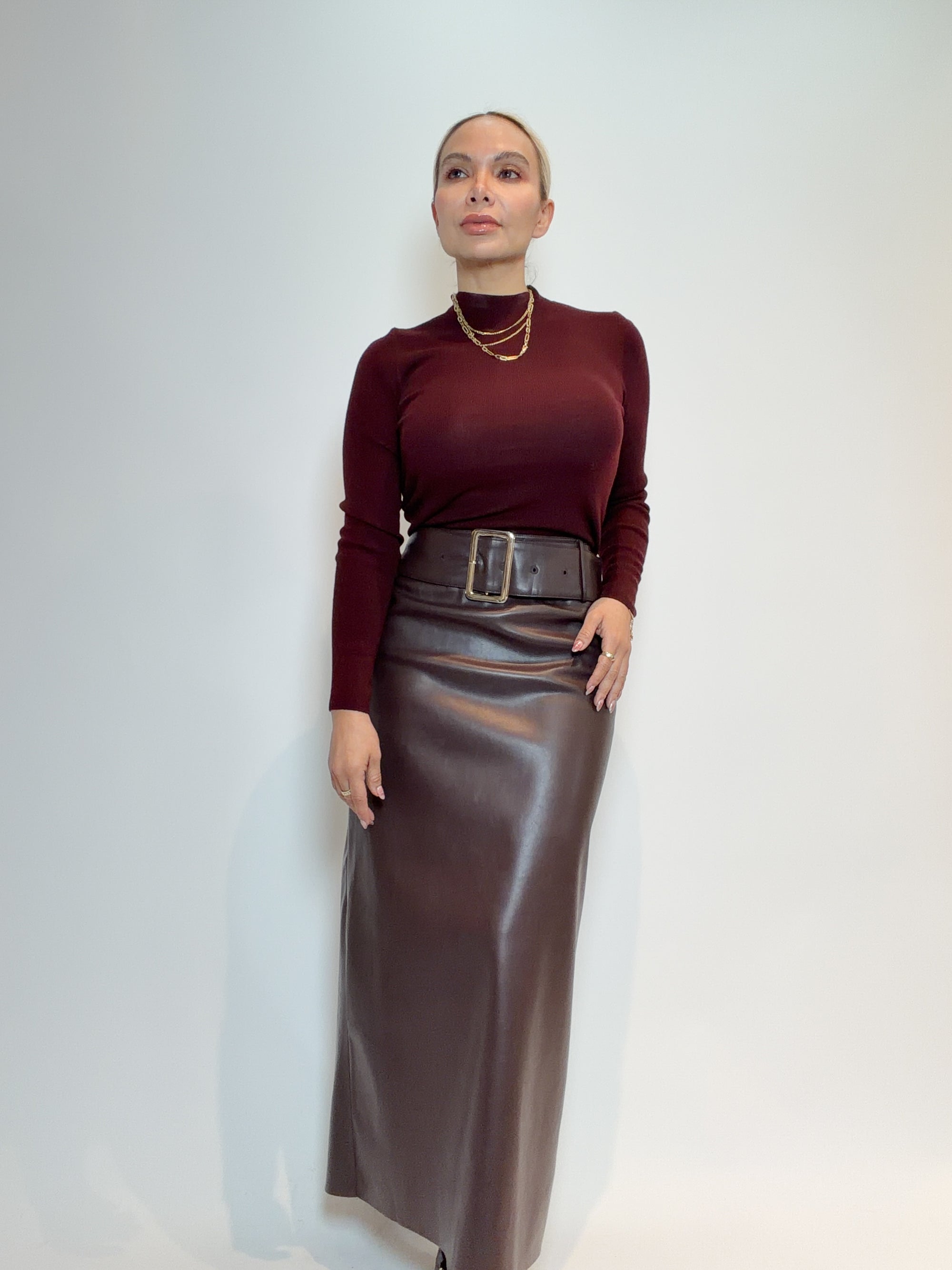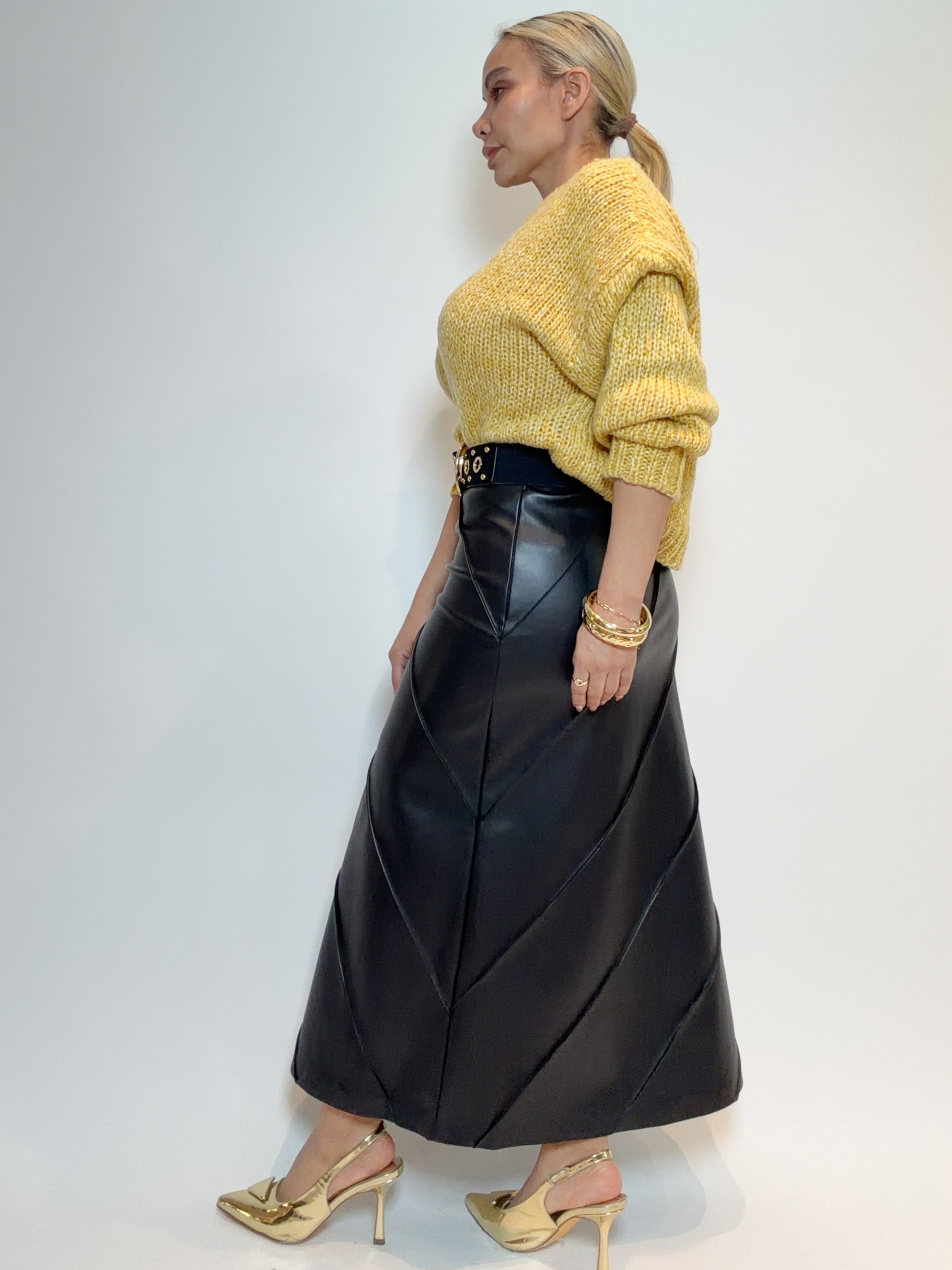 FALDA EFECTO PIEL CON CINTURÓN