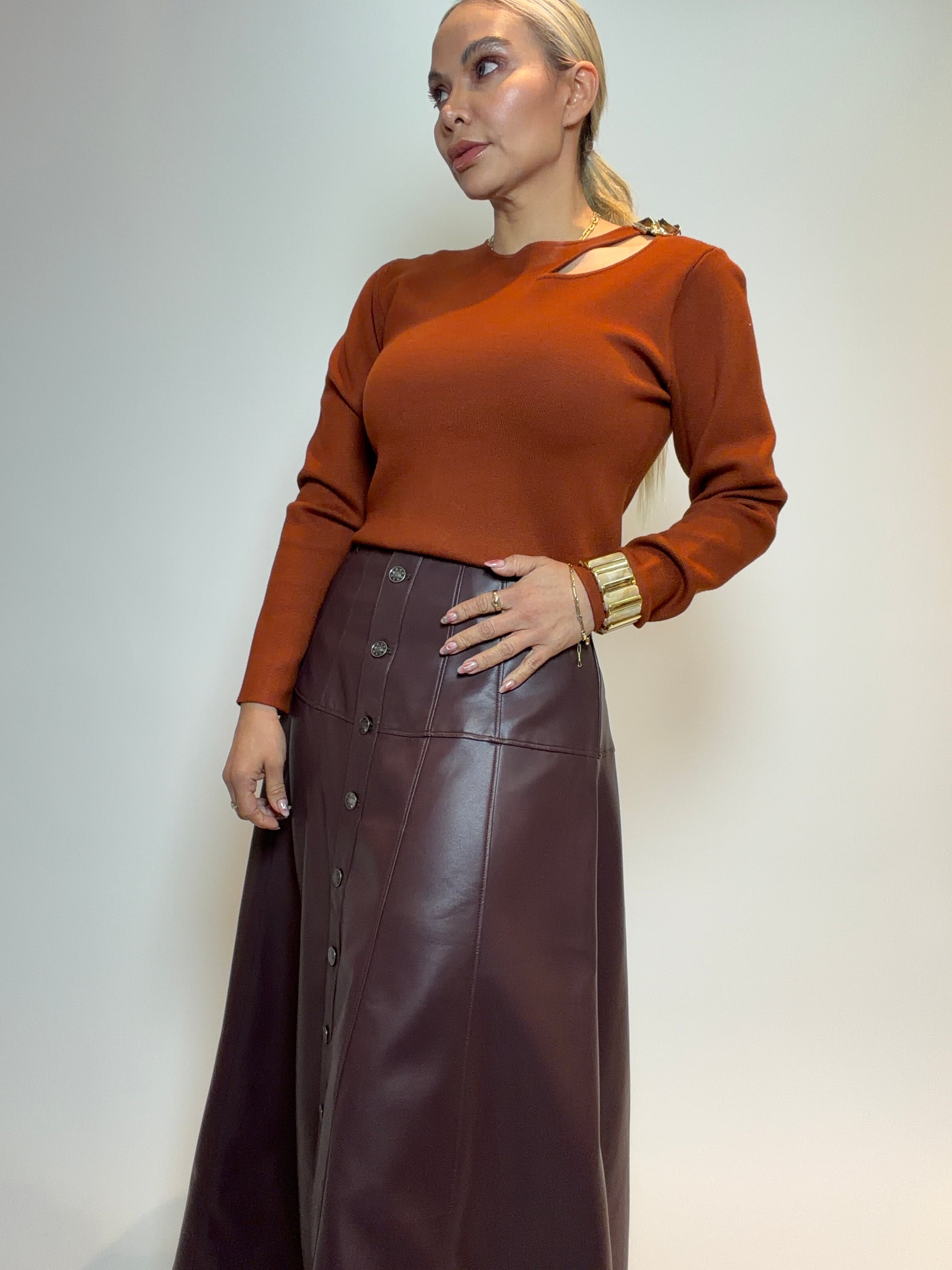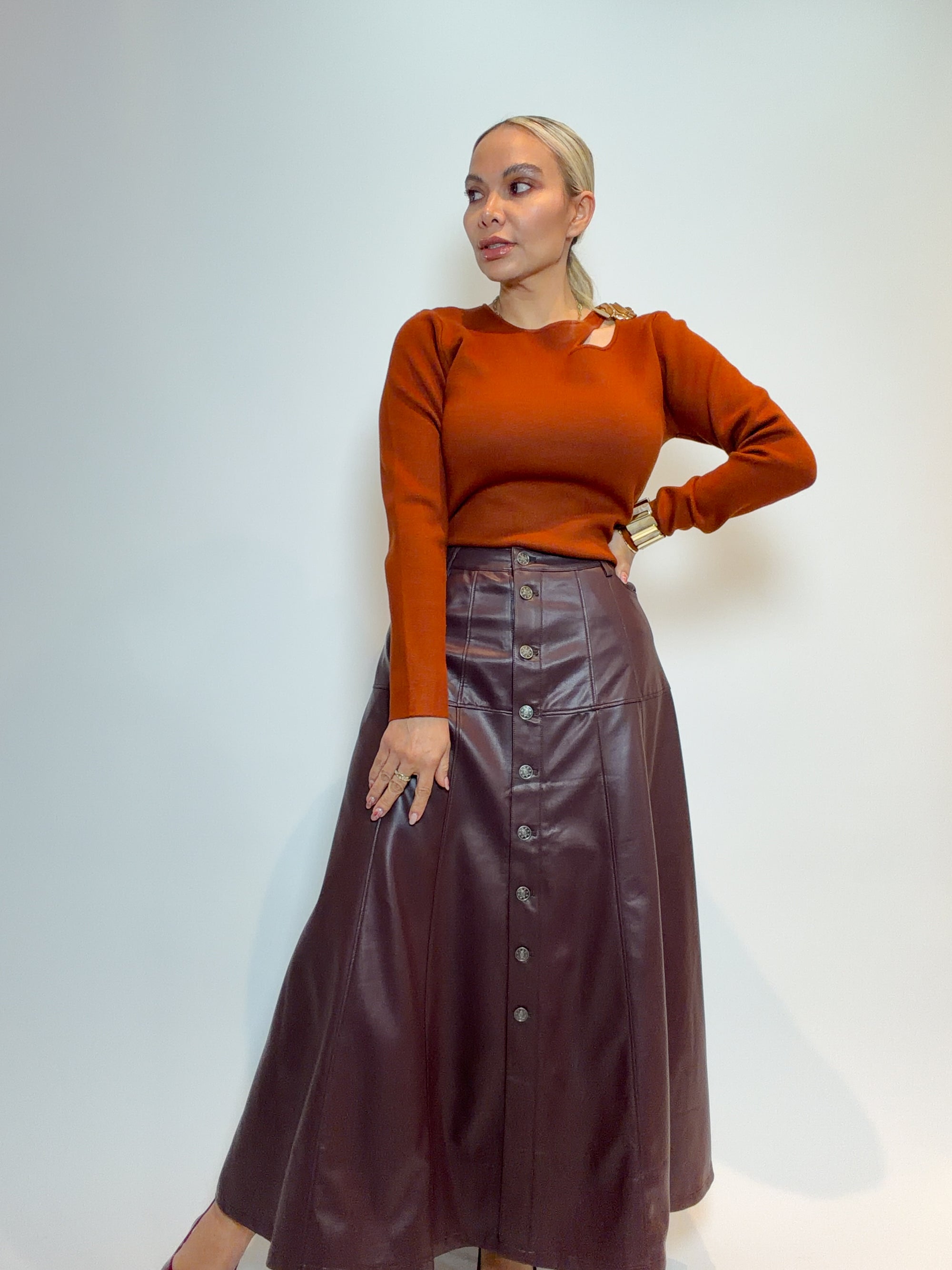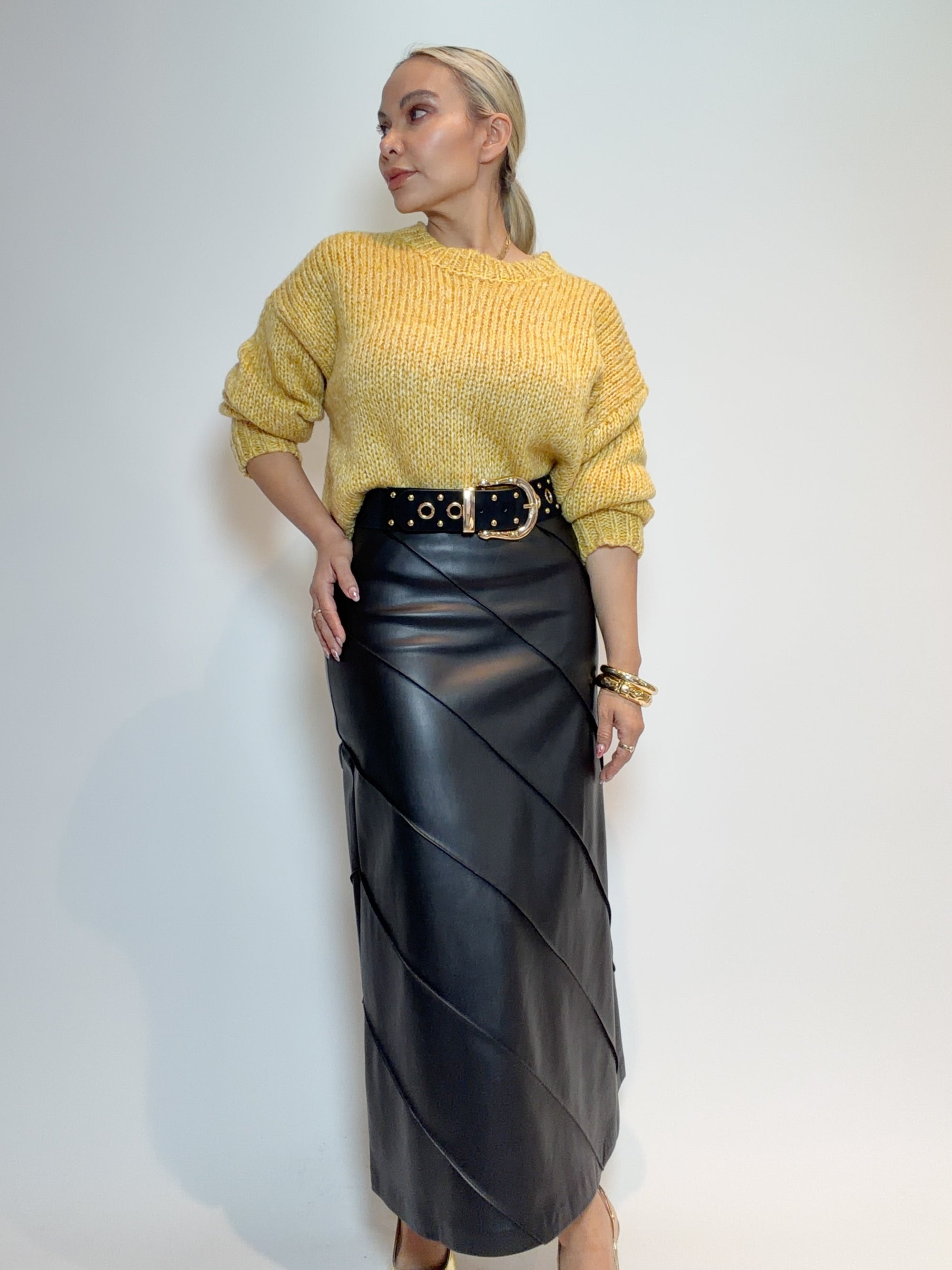 FALDA EFECTO PIEL CON CINTURÓN