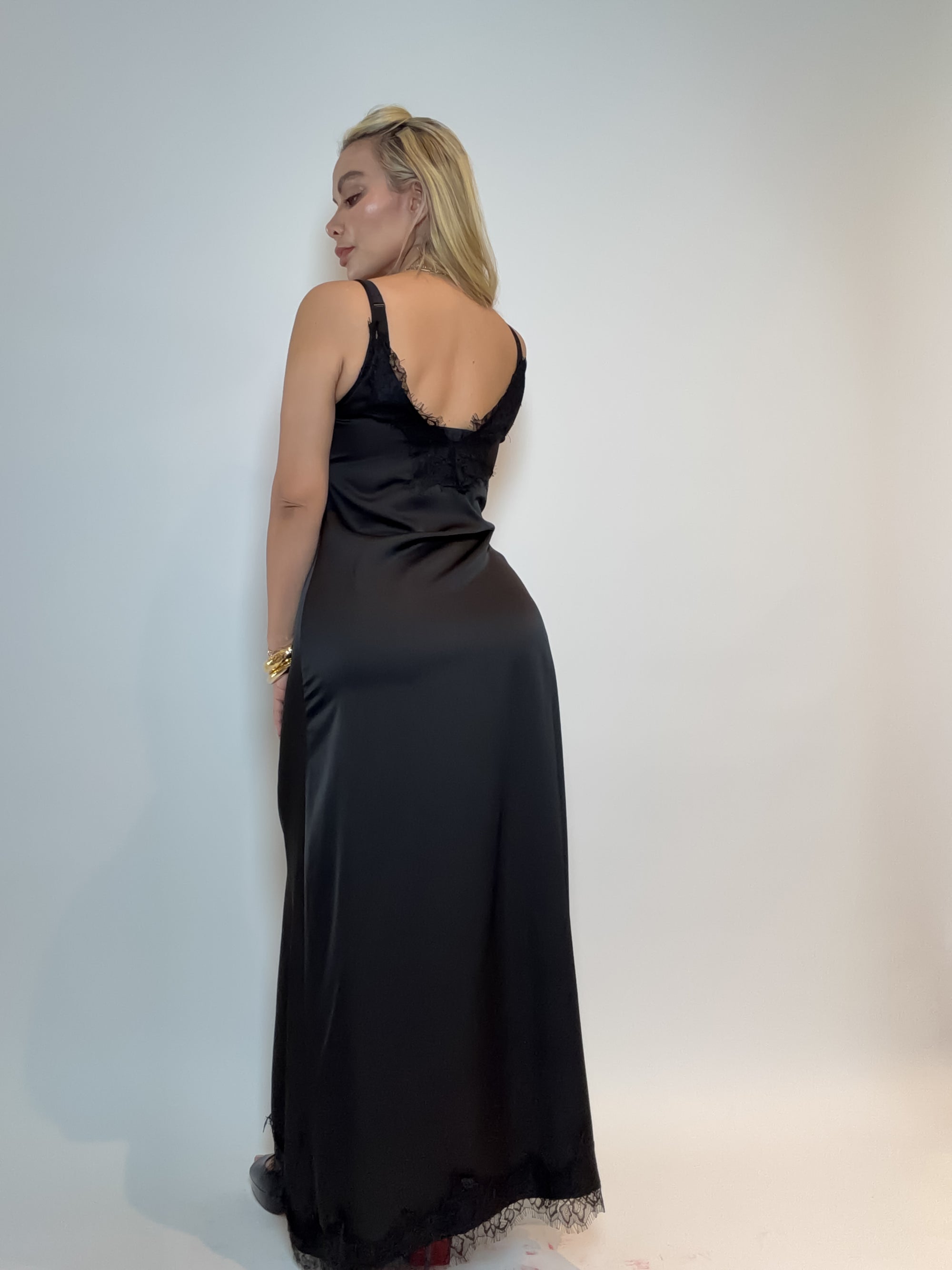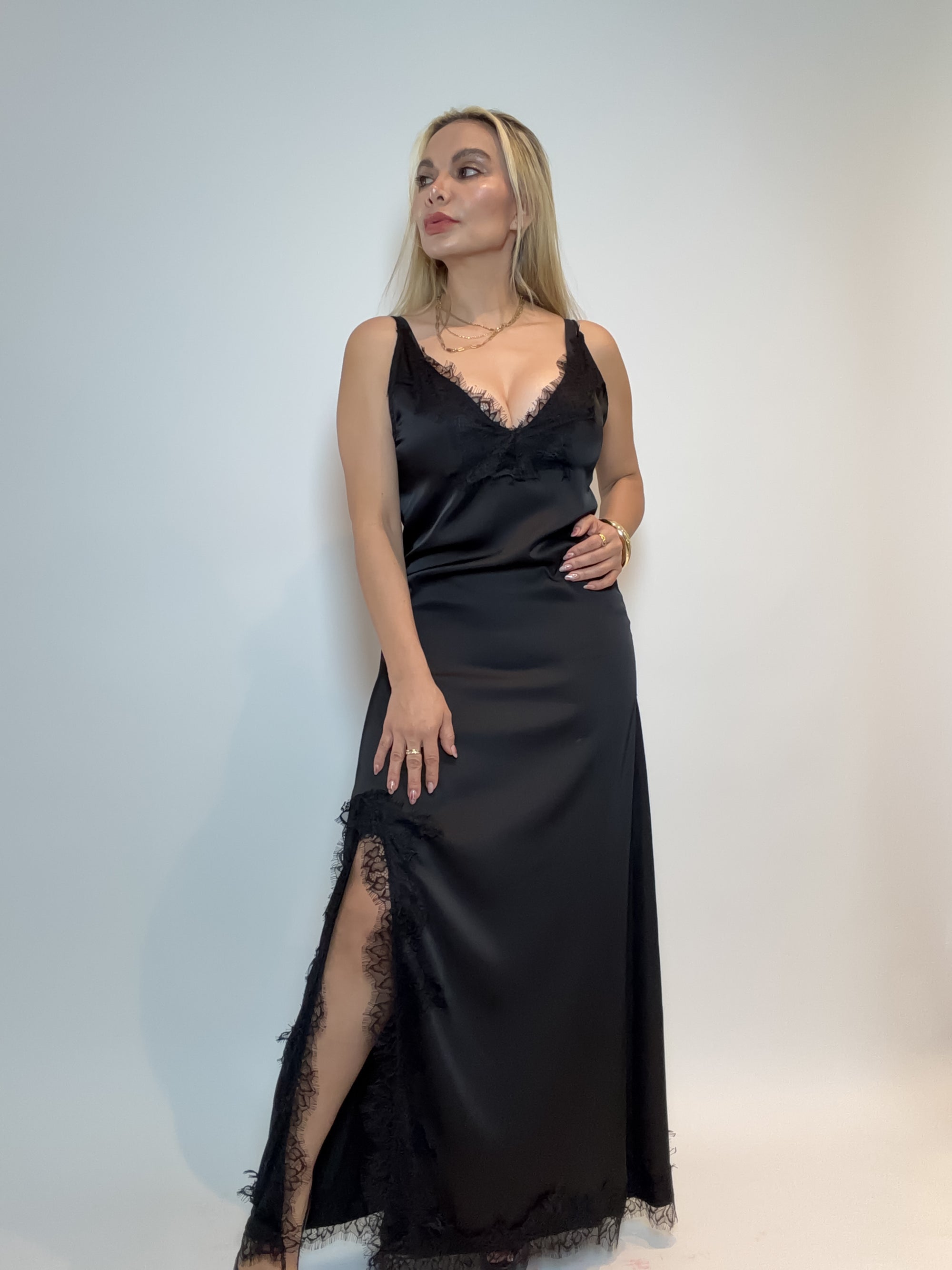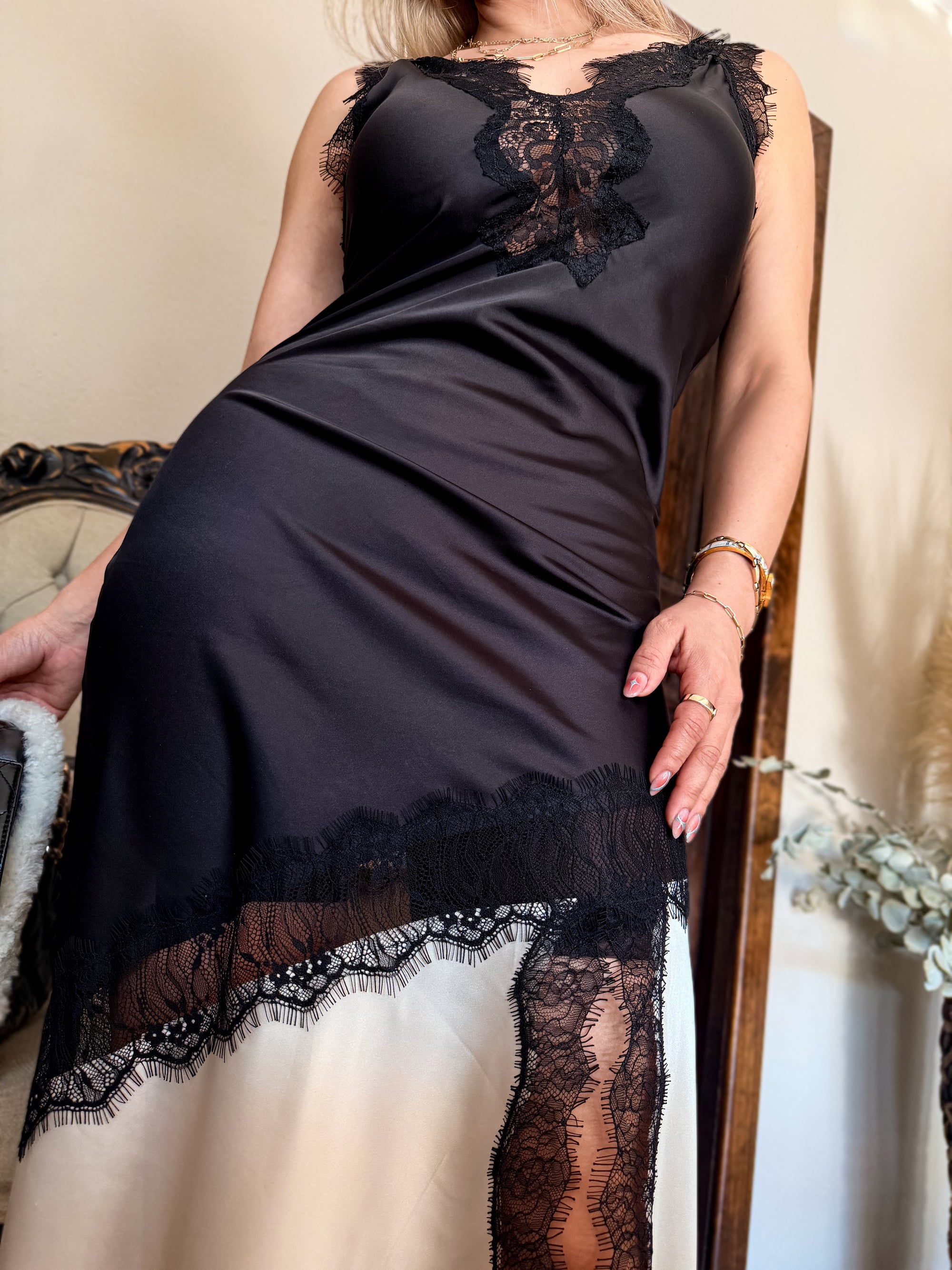 VESTIDO LENCERO SATINADO CON ENCAJE