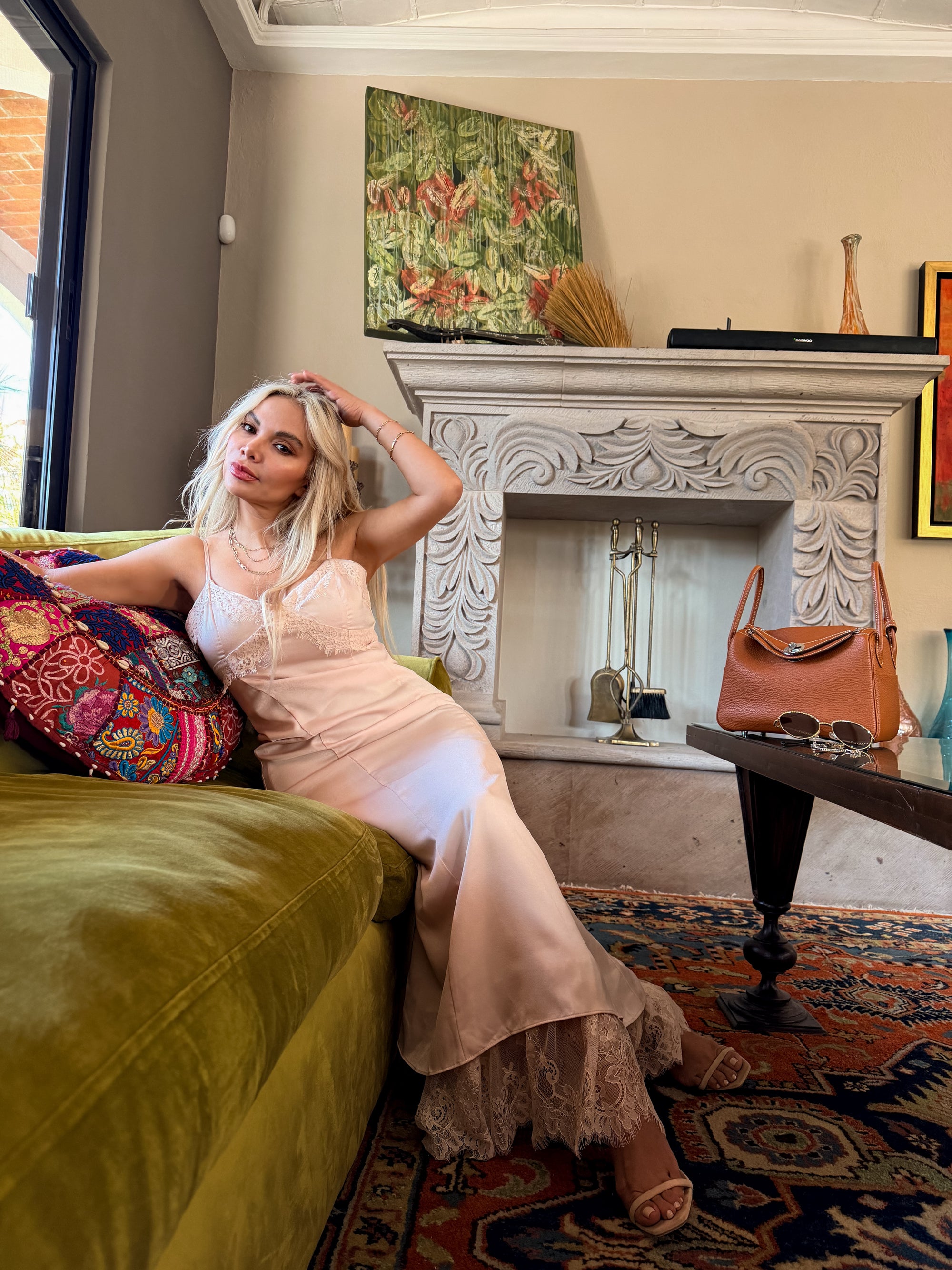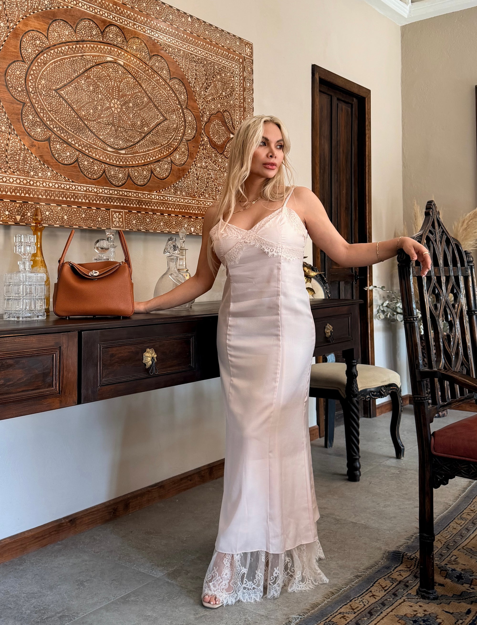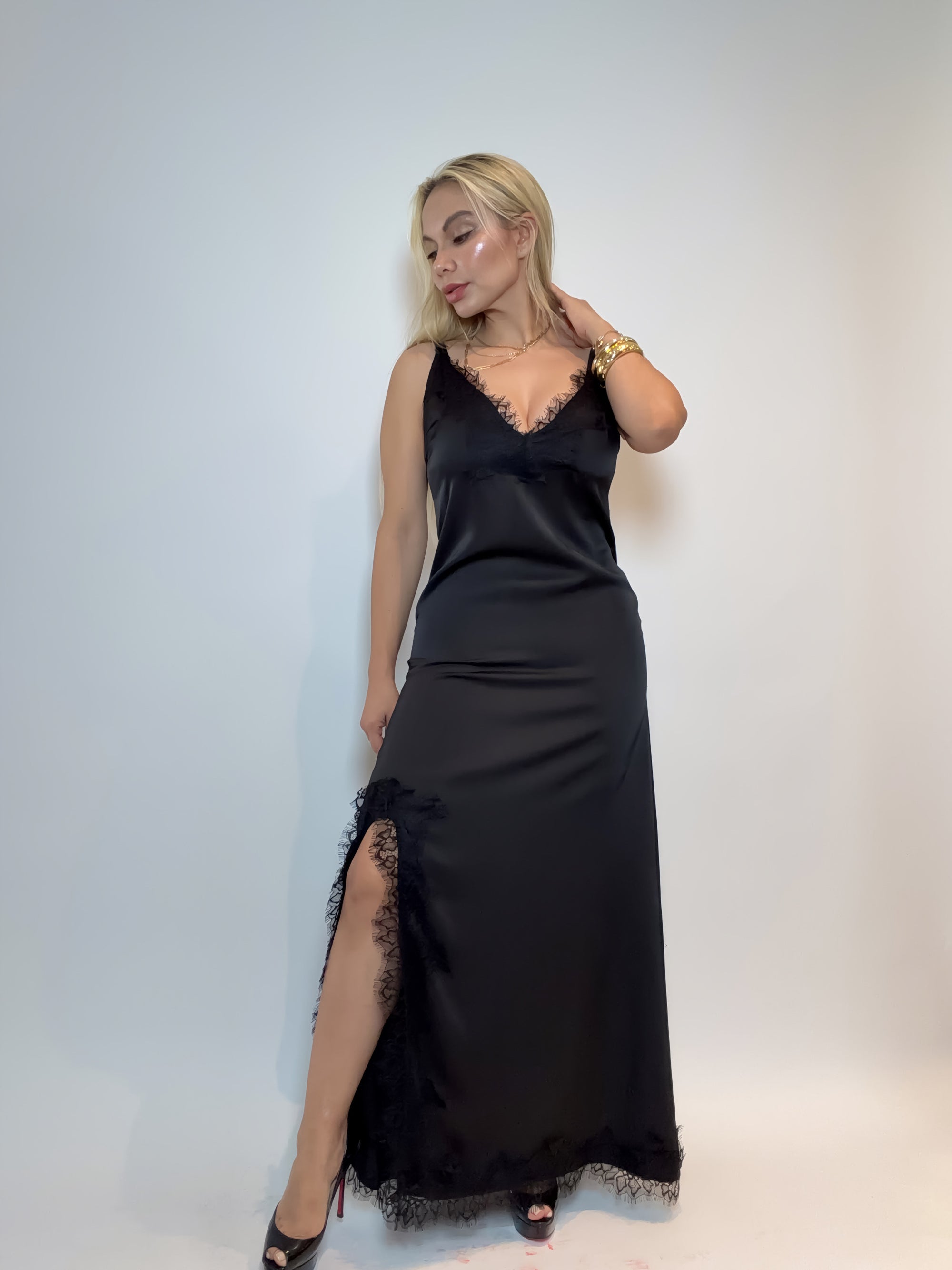VESTIDO LENCERO SATINADO CON ENCAJE