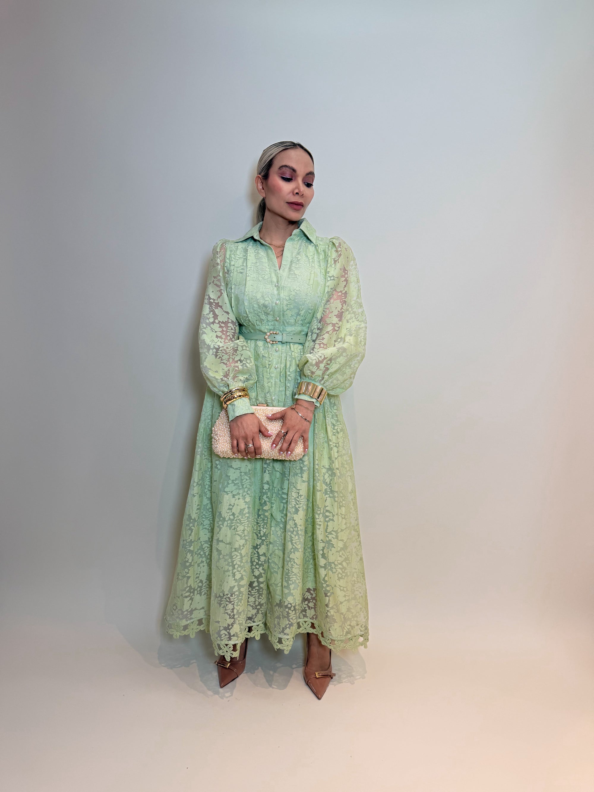 VESTIDO VERDE CELESTE