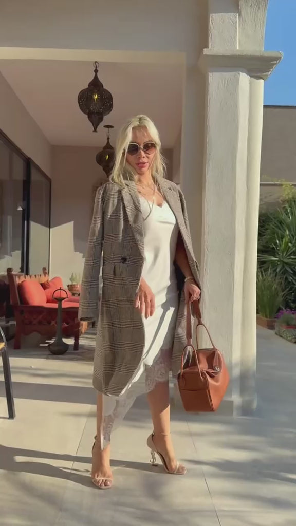 Gabardina de corte clásico en tejido tipo sastre, con diseño recto y estructura ligera que aporta sofisticación inmediata a cualquier outfit. Su patrón discreto y acabado impecable la convierten en una pieza atemporal, ideal para transitar entre temporadas. Presenta solapas tradicionales, cierre frontal y largo midi, logrando un equilibrio perfecto entre elegancia y funcionalidad.